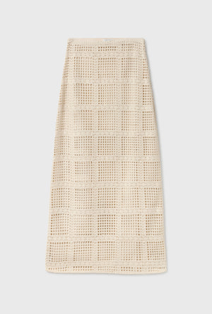 Cotton Grid Long Skirt Natural