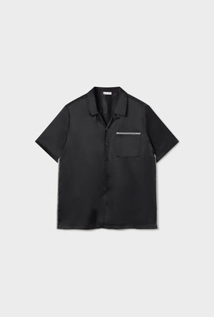CLIP SILK SHORT SLEEVE BOYFRIEND SHIRT BLACK