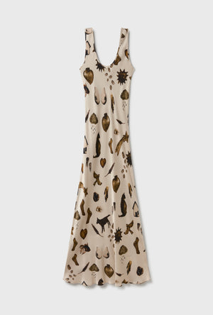 Short Sleeve Bias Dress Fibonacci Off-White